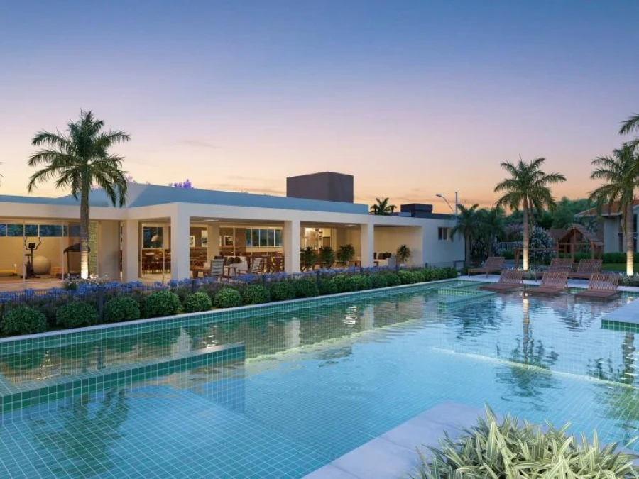 O condomínio Verdes Campos conta com infraestrutura completa incluindo academia, piscina e playground para toda família. O empreendimento oferece segurança 24 horas e área de lazer estruturada, proporcionando qualidade de vida em ambiente reservado. O terreno aceita financiamento bancário, facilitando a aquisição.